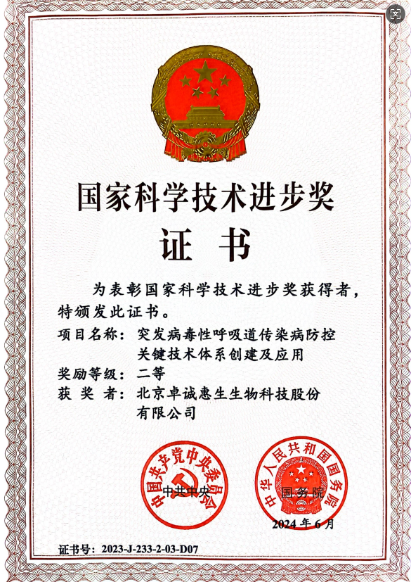 - 國家科學技術進步獎證書二等獎